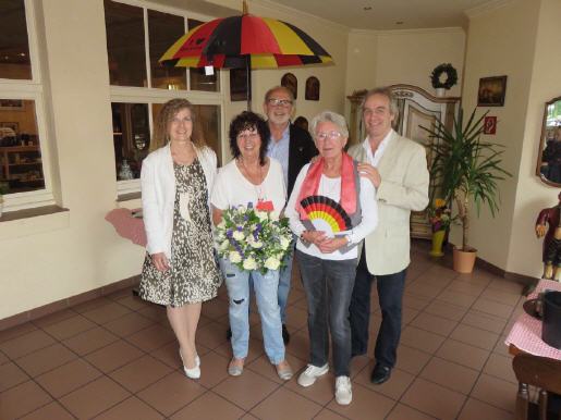 nachdem alle leckeren, selbstgebackenen Kuchen verputzt waren, zahlreiche startende Flugzeuge von unten betrachtet wurden, die Bänke das eine oder andere Mal von Regenwasser befreit worden waren, war es dann soweit, das Schießen auf die Platte konnte beginnen. Die Gesellschaft war stolz, dass fünf Schützen zum Wettbewerb um den finalen Königsschuss antraten. Schnell jedoch stand fest, dass die männlichen Wettbewerber keine Chance hatten, denn die neue Kompanie-Königin der Gesellschaft König Wilhelm wurde nach einem präzisen Schuss Sabine Bollonia (Anm. der Schriftführerin: Man könnte fast meinen, es gäbe nur Kavaliere in der Gesellschaft und man hätte mir den „Vortritt“ gelassen….:-) ).